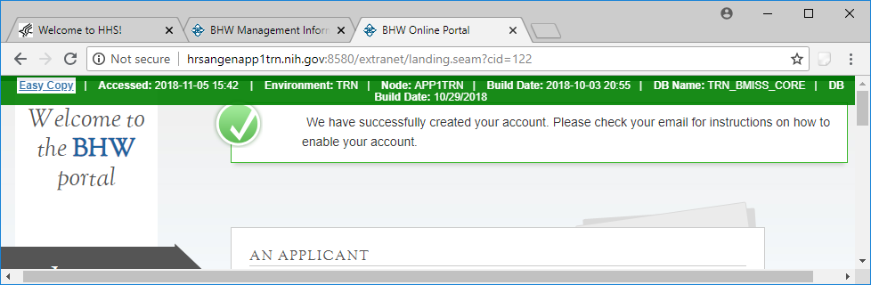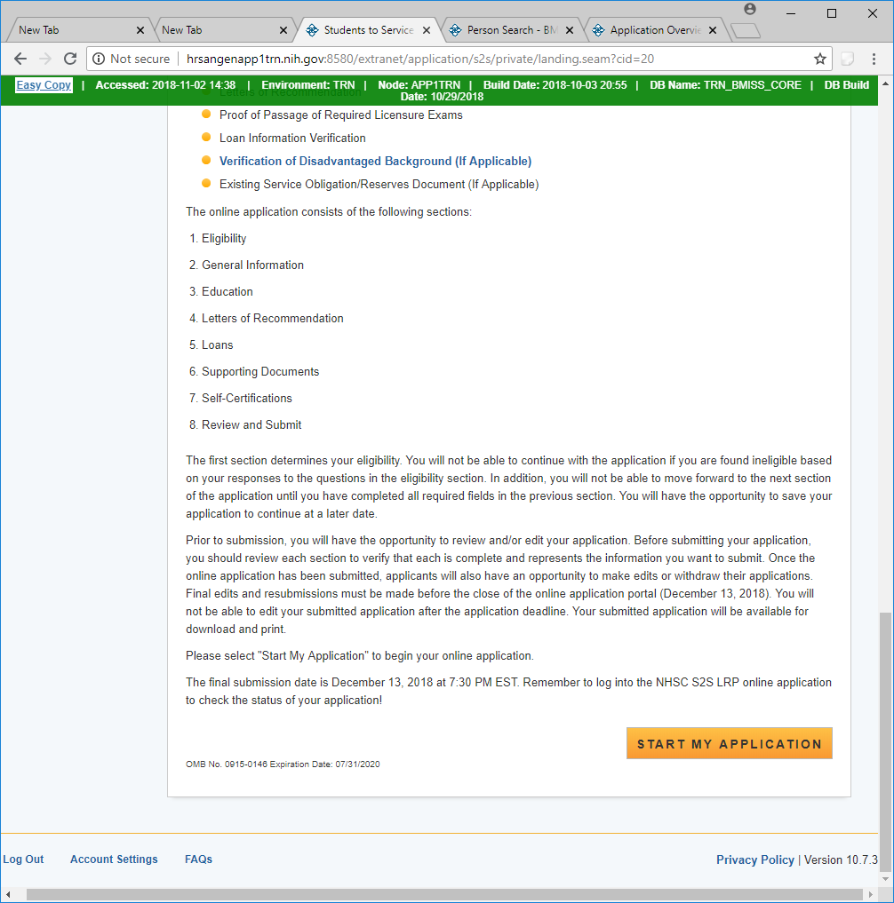Welcome Screen – Only seen the first time that an applicant logs on.