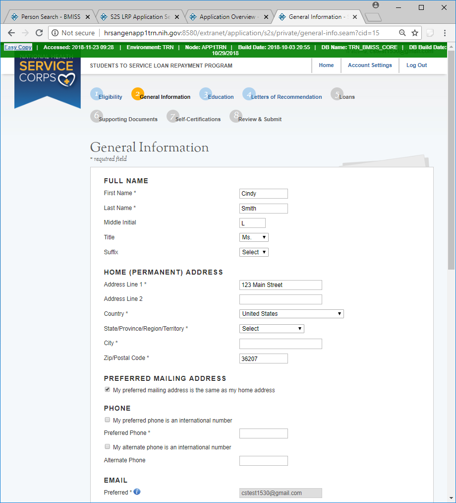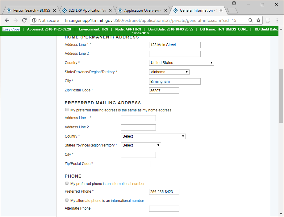 If the Home address is not the preferred mailing address, then the Preferred Mailing address will expand with a mailing address section.