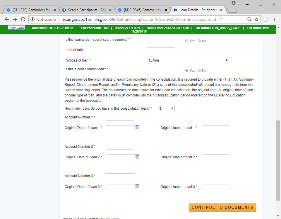 If the loan is a consolidated loan then instructions for required documentation is displayed and a drop down for the number of loans that were consolidated.