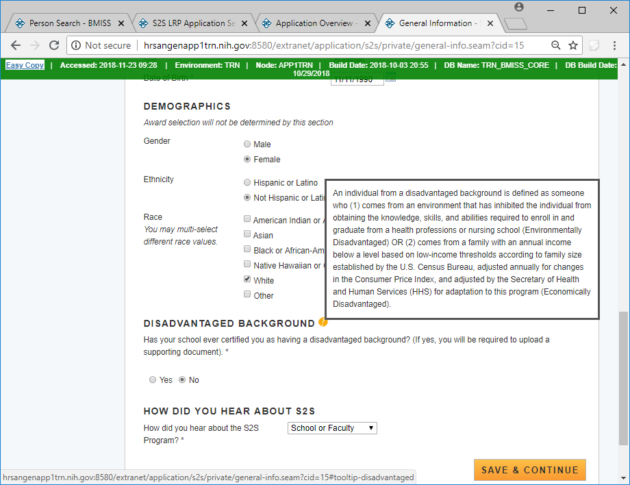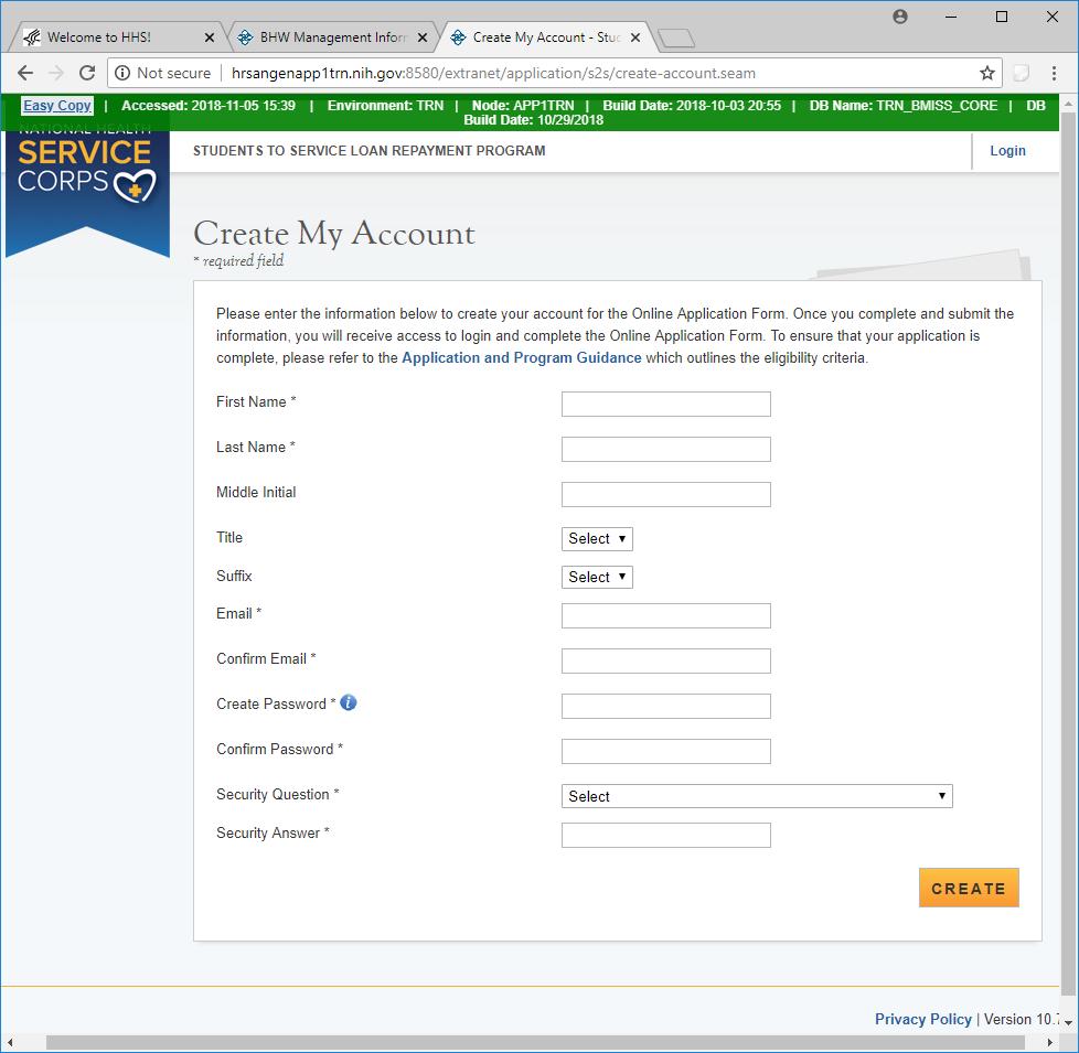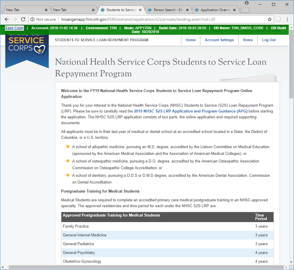 Public Burden Statement: The purpose of this information collection is to obtain information through the National Health Service Corps Students to Service Loan Repayment Program (NHSC S2S LRP) that is used to assess a loan repayment applicant’s eligibility and qualifications. Clinicians interested in participating in the NHSC S2S LRP must submit an application to the NHSC S2S LRP through the My BHW online portal. An agency may not conduct or sponsor, and a person is not required to respond to, a collection of information unless it displays a currently valid OMB control number. The OMB control number for this information collection is 0915-0146 and it is valid until xx/xx/xxxx. This information collection is required to obtain or retain a benefit [Section 338B of the Public Health Service Act (42 USC 254l-1), as amended; Section 331(i) of the Public Health Service Act (42 USC 254d(i)), as amended)]. The information is protected by the Privacy Act, but it may be disclosed outside the U.S. Department of Health and Human Services, as permitted by the Privacy Act and Freedom of Information Act, to Congress, the National Archives, and the Government Accountability Office, and pursuant to court order and various routine uses as described in the System of Record Notice 09-15-0037. Public reporting burden for this collection of information is estimated to average xx hours per response, including the time for reviewing instructions, searching existing data sources, and completing and reviewing the collection of information. Send comments regarding this burden estimate or any other aspect of this collection of information, including suggestions for reducing this burden, to HRSA Reports Clearance Officer, 5600 Fishers Lane, Room 14NWH04, Rockville, Maryland, 20857.