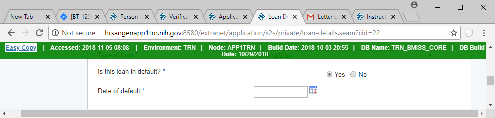 If a loan is in default, Date of Default field will appear