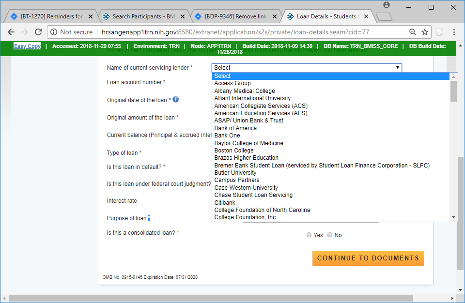 Current Servicing Lender drop down too long to display all choices