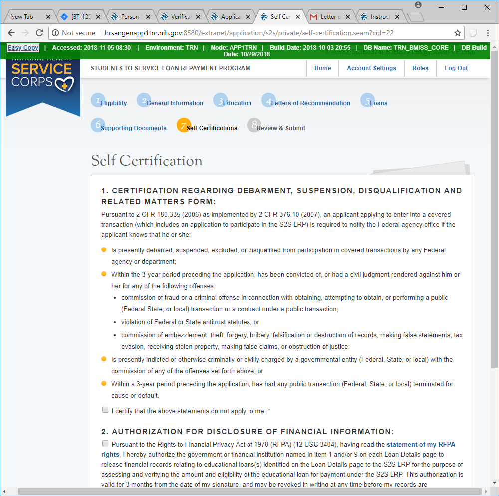 Section 7 – Self Certifications