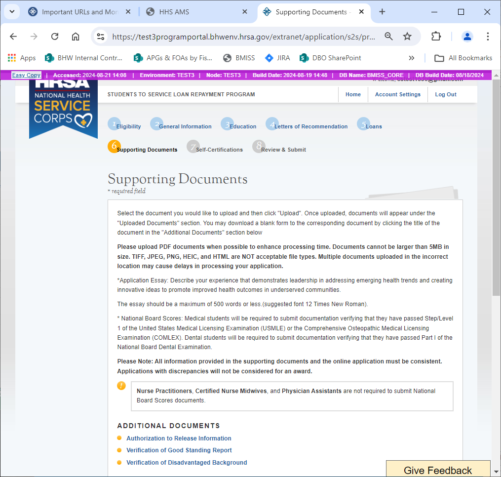 Public Burden Statement: The purpose of this information collection is to obtain information through the National Health Service Corps Students to Service Loan Repayment Program (NHSC S2S LRP) that is used to assess a loan repayment applicant’s eligibility and qualifications. Clinicians interested in participating in the NHSC S2S LRP must submit an application to the NHSC S2S LRP through the My BHW online portal. An agency may not conduct or sponsor, and a person is not required to respond to, a collection of information unless it displays a currently valid OMB control number. The OMB control number for this information collection is 0915-0146 and it is valid until xx/xx/xxxx. This information collection is required to obtain or retain a benefit [Section 338B of the Public Health Service Act (42 USC 254l-1), as amended; Section 331(i) of the Public Health Service Act (42 USC 254d(i)), as amended)]. The information is protected by the Privacy Act, but it may be disclosed outside the U.S. Department of Health and Human Services, as permitted by the Privacy Act and Freedom of Information Act, to Congress, the National Archives, and the Government Accountability Office, and pursuant to court order and various routine uses as described in the System of Record Notice 09-15-0037. Public reporting burden for this collection of information is estimated to average xx hours per response, including the time for reviewing instructions, searching existing data sources, and completing and reviewing the collection of information. Send comments regarding this burden estimate or any other aspect of this collection of information, including suggestions for reducing this burden, to HRSA Reports Clearance Officer, 5600 Fishers Lane, Room 14NWH04, Rockville, Maryland, 20857.