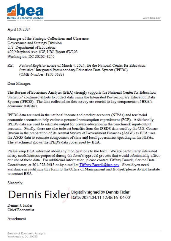 IPEDS as these data are crucial to key components of BEA’s