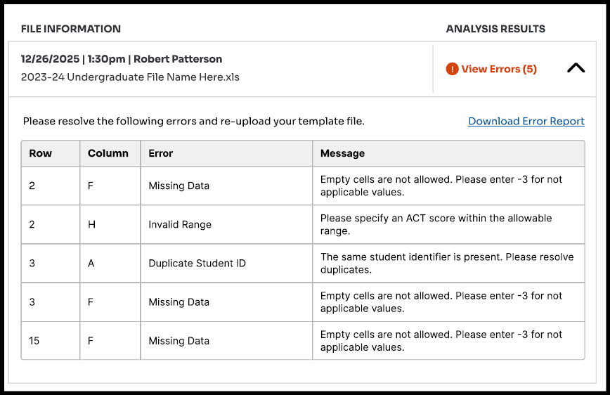 Ensure that the file you are uploading matches the academic year selected;